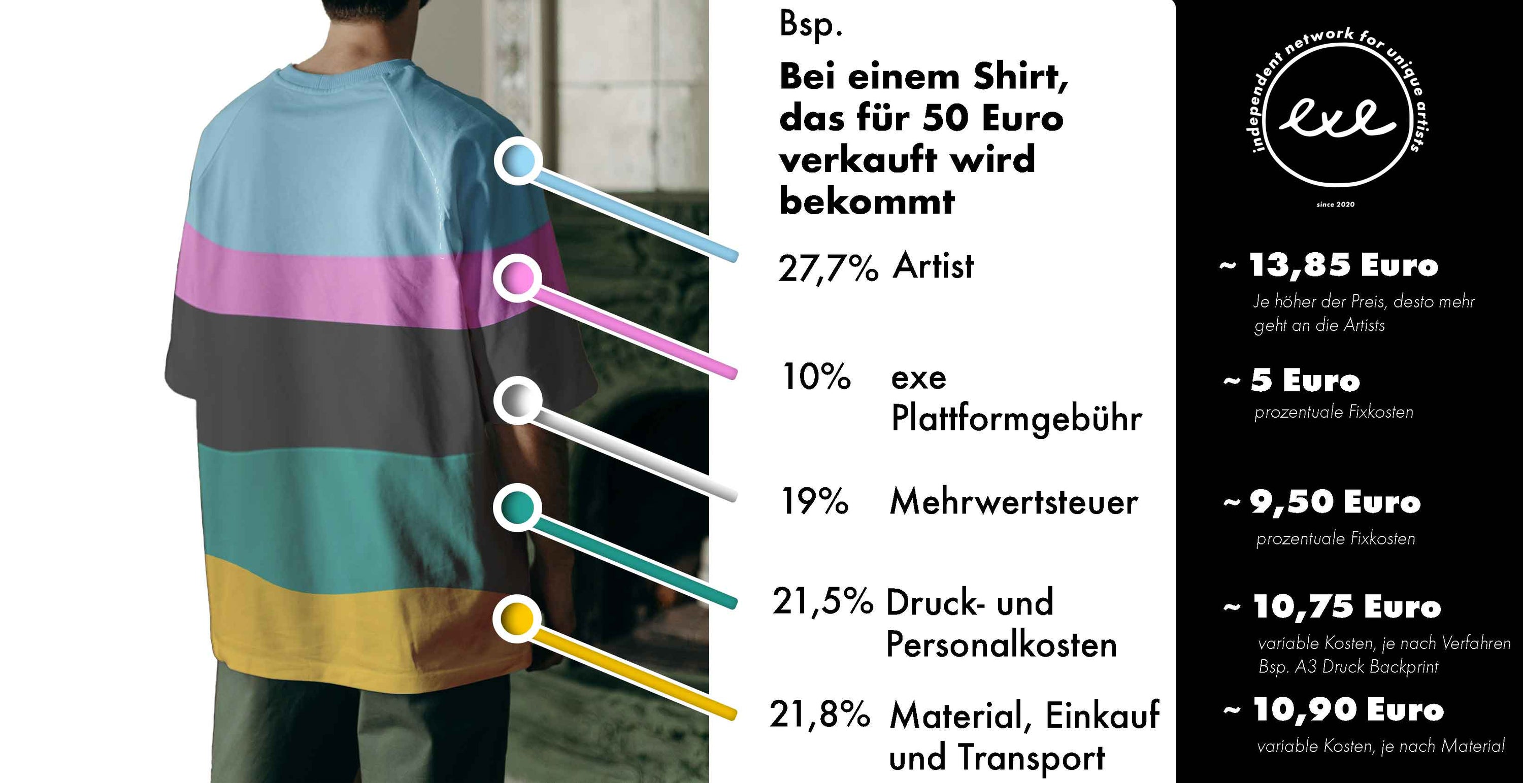 Der Preis ist so kalkuliert, dass die Produktionskosten gedeckt sind. 10% des Beitrags fließen in die Plattform exe.network, um weitere kreative und soziale Projekte zu ermöglichen.